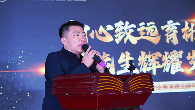 吉林省文理教育投资集团董事长郎小明致训勉之辞。他指出,过去一年,学校在四大维度上深植根基:其一,坚持立德树人根本任务,将价值塑造深植于技能传授之中,培养德才兼备的时代工匠;其二,深化特色办学内涵,依托各系部专业优势,构建产教融合、特色鲜明的人才培养体系;其三,巩固家校联动与公益办学模式,让教育在家庭的温暖与学校的淬炼中形成合力,践行慈善初心;其四,全面提升办学口碑与教育质量,以扎实的育人成果与社会贡献,赢得广泛赞誉。