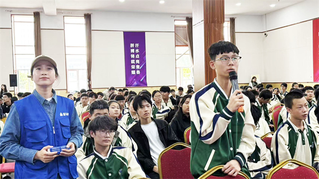 报告厅内气氛热烈,学子们争相举手,踊跃参与有奖问答环节。“诈骗分子常会虚构何种紧急情境,令人措手不及?”一个个贴近现实的问题,激发阵阵讨论热潮。虽未设情景模拟演练,但问答之间的思维碰撞,同样有效激活了学生的辨别能力与防范意识。