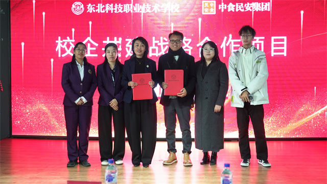 仪式核心环节,中食民安集团代表祖可新总经理与学校教学校长王会萍共同签署合作协议,现场掌声雷动,标志着双方战略合作正式启动。签约结束后,全体嘉宾移步台前合影留念,定格这一“校企携手育人才”的重要瞬间。