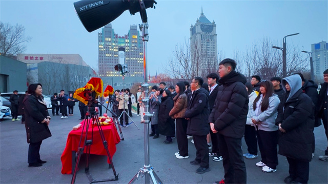 开机仪式现场,气氛庄重而热烈。教学管理中心校长王会萍在致辞中,对同学们展现出的创作热情、组织能力和实践精神给予了高度肯定。她强调,学校始终鼓励学生将创新思维转化为具体行动,此次短剧制作正是一个绝佳契机,希望同学们勇于探索、大胆想象,用青春视角观察校园生活,用灵动镜头记录成长轨迹,用真挚作品展现当代职教学子的风采与校园文化的内涵,并预祝拍摄工作圆满成功。